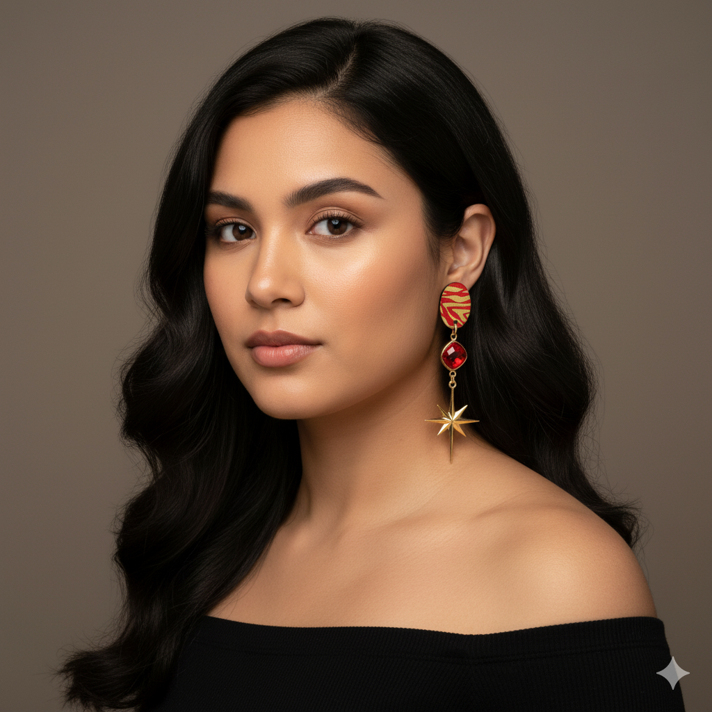 Disponível em três versões cheias de personalidade – vermelho rubi, amarelo dourado e preto zebrato – o Brinco Sirius é ideal para quem procura brincos statement artesanais, leves e confortáveis, mas com impacto visual e design exclusivo.
