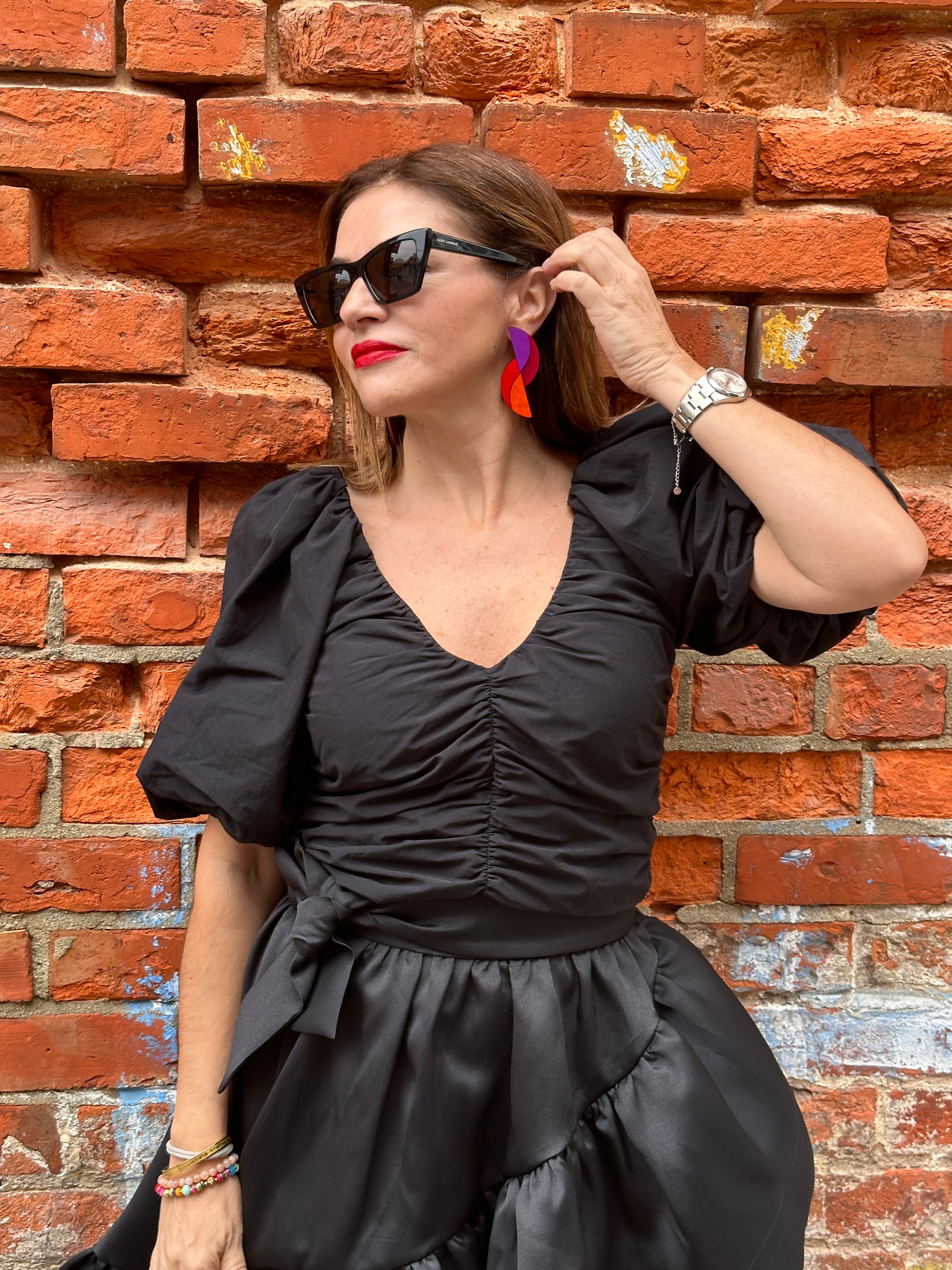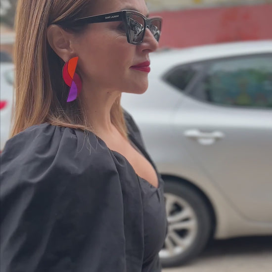 Agora disponíveis numa paleta de tons tendência que incluem três tons de azuis e do amarelo "manteiga". Este design continua a combinar elegância, modernidade e leveza, com elementos geométricos feitos em acrílico espelhado e pastel. O formato assimétrico mantém o seu toque de originalidade, garantindo que cada peça seja única e expressiva. Seja para um dia casual ou uma ocasião especial, os Two Half's são a escolha perfeita para quem procura acessórios impactante e com personalidade.