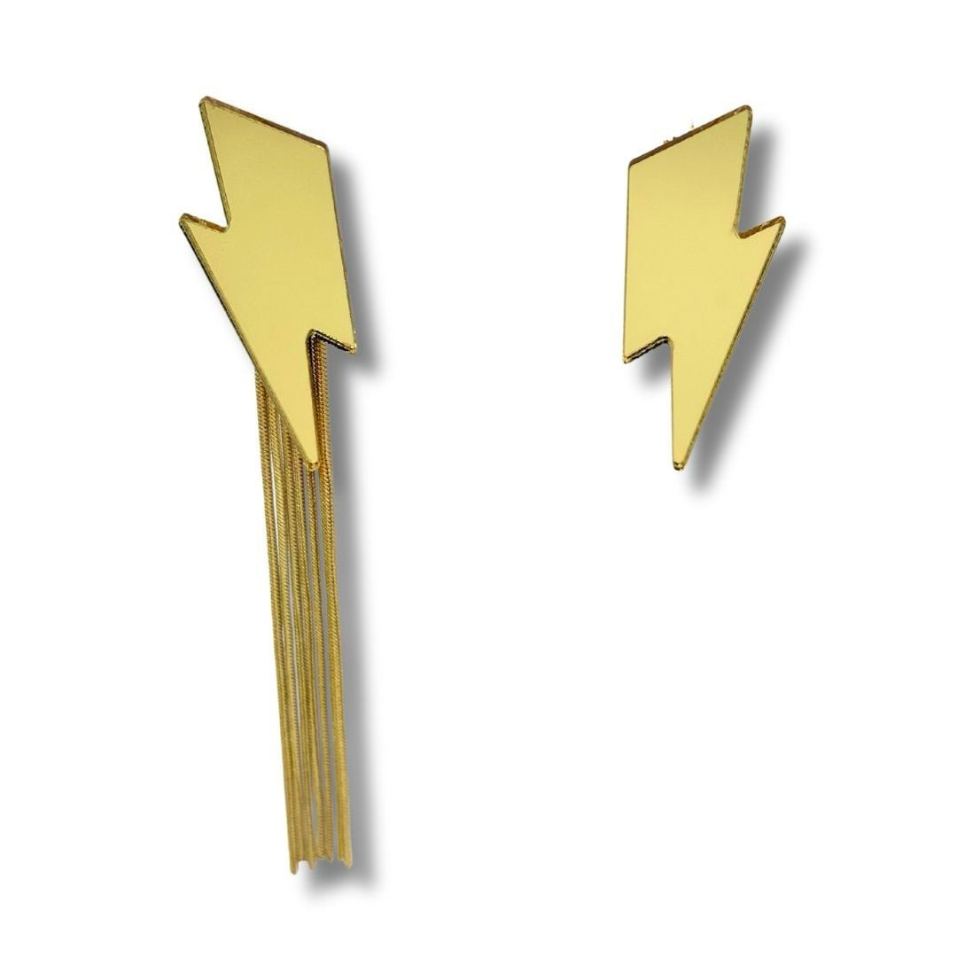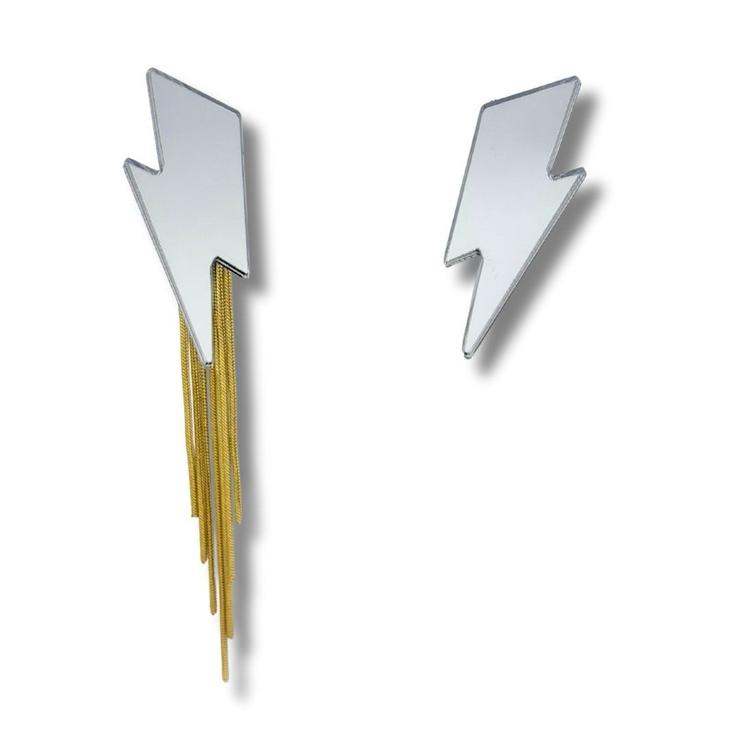 Thunderstorm - brincos assimétricos com dois raios e franja com movimento.